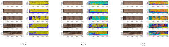 Color-based levee failure image analysis using K-means clustering (a) 2 classification, (b) 3 classification, and (c) 5 classification.