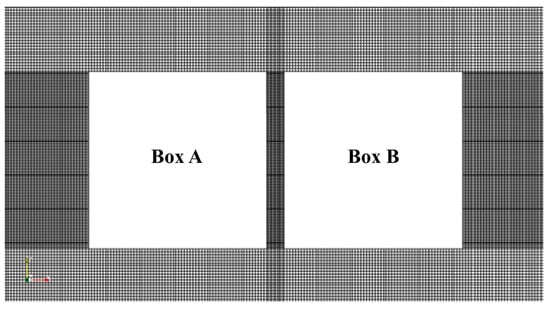Mesh configuration around the boxes within the computational domain in OpenFOAM.