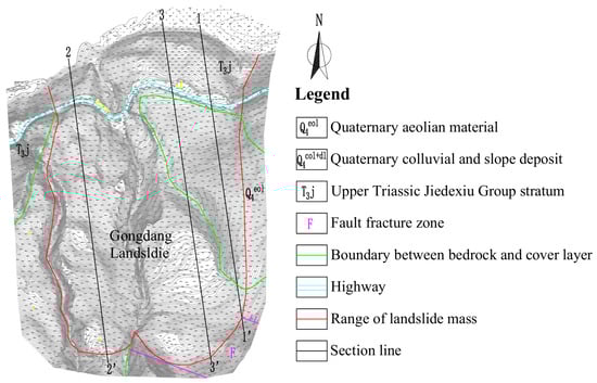 - Bai, X.S. The Mechanism Study and Movement Characteristics Prediction of Shuanghuyu Landslide. Master’s Thesis, Xi’an University of Science and Technology, Xi’an, China, 2021. [Google Scholar]