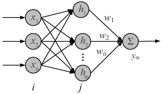 The configuration of layers of an RBF neural network is identical to that of an MLP. The activation of neurons in the hidden layer is achieved by employing a radial basis function. The hidden layer comprises a set of computational units known as hidden nodes. Figure 5 illustrates the structure of a conventional three-layer radial basis function (RBF) neural network [30].