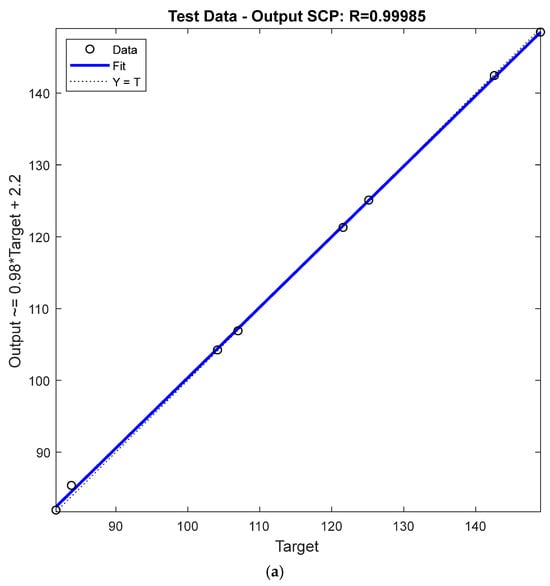 In order to evaluate the predicted models, the test data are used. Figure 9 and Figure 10 present the output results for the SCP output parameter obtained from the MLP and RBF neural network models, respectively:
