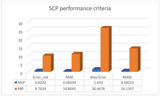 Evaluation metrics of MLP and RBF neural networks for SCP parameter.