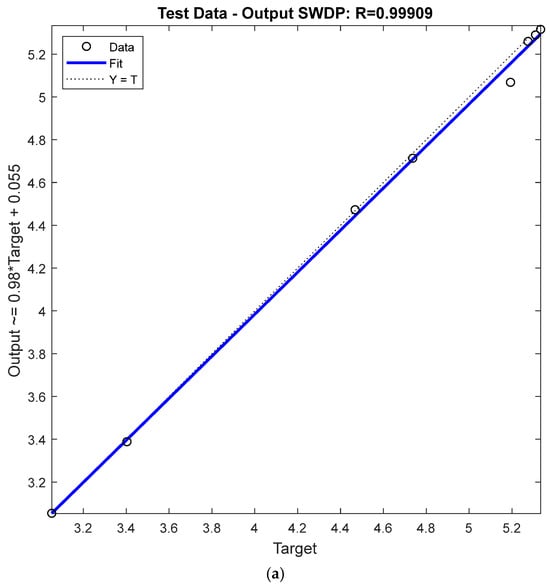 (a) Regression diagram of test data of MLP neural network for SWDP parameter. (b) The test data error for the MLP model in predicting the SWDP parameter.