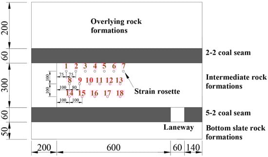| Rock Type | Density/Kg·m−3 | Compressive Strength/MPa | Cohesion/MPa | Internal Friction/° | Elastic Modulus/GPa | Poisson’s Ratio | Thickness/M |