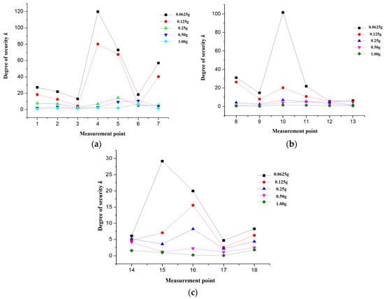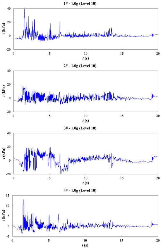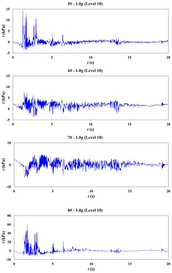 3.2.4. Simulating the Shear Stress Variation with Different Seismic Intensity Conditions