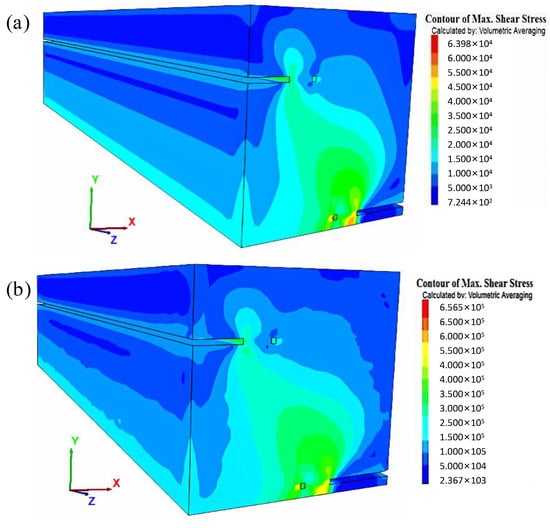 - The variation trend of the maximum shear stress in the middle rock layer remains consistent under different seismic intensity conditions: the farther away from the lower coal excavation position, the lower the shear stress in the middle rock layer, and the closer to the excavation position, the faster the decrease in shear stress. Therefore, the larger the horizontal safety distance between the upper and lower reservoirs, the smaller the influence between the two reservoirs.
