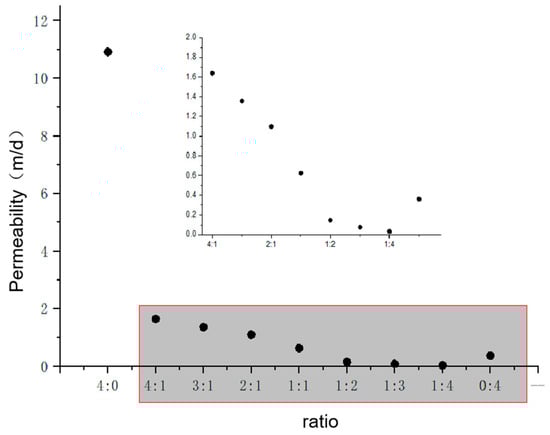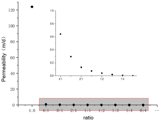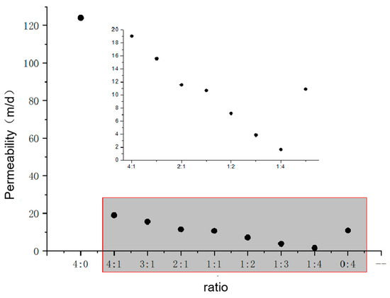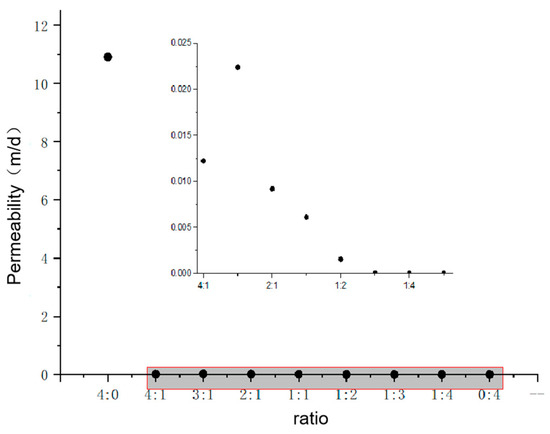 - From Figure 7, we can see that: When the medium-permeability particles are mixed with low-permeability particles, the permeability of the mixed sample is always lower than that of the medium-permeability particles. When the low-permeability particles account for >50% of the total, the permeability of the mixed sample is lower than that of the low-permeability particles.