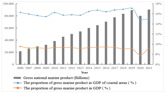 China’s gross ocean product and its share in 2006–2021.