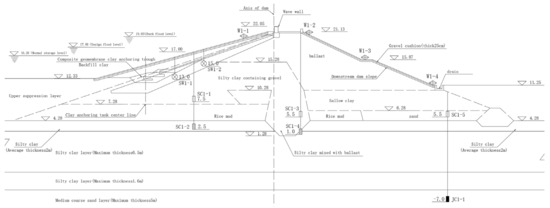 The river-blocking dam is an earth-rock dam with a maximum height of 16.85 m. It is reinforced with a combination of clay slanting walls and composite geomembranes for seepage prevention. The dam crest elevation is 21.13 m, with a length of 600 m and a width of 5.5 m. There is a wave-prevention wall with a height of 1.2 m. The upstream slope ratio is 1:3.7, protected by concrete prefabricated block revetment, while the downstream slope ratios are 1:2.2 and 1:2.5 from top to bottom, protected by granite cobblestone revetment.