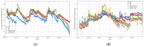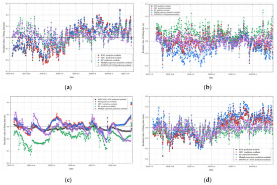 Comparison of results of different residual models: (a) Monitoring point JC1-2; (b) Monitoring point SC2-6; (c) Monitoring point SW3-1; (d) Monitoring point JC4-2.