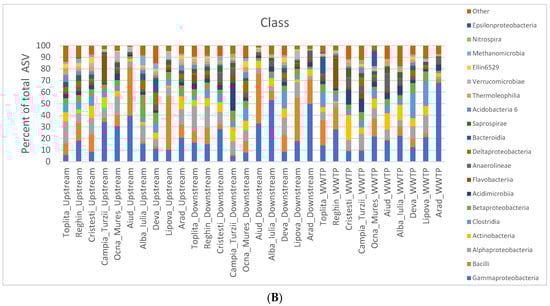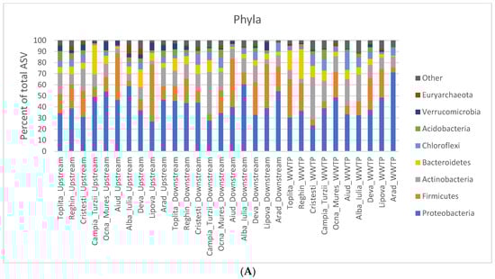 - Boeraş, I.; Burcea, A.; Coman, C.; Bănăduc, D.; Curtean-Bănăduc, A. Bacterial microbiomes in the sediments of lotic systems ecologic drivers and role: A case study from the Mureş River, Transylvania, Romania. Water 2021, 13, 3518. [Google Scholar] [CrossRef]