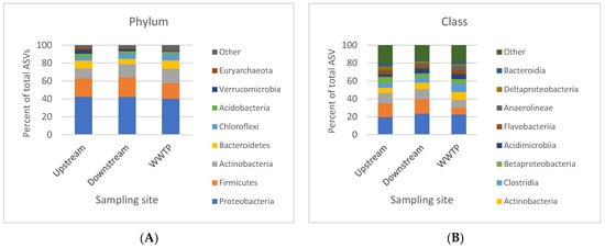 - Chu, B.T.T.; Petrovich, M.L.; Chaudhary, A.; Wright, D.; Murphy, B.; Wells, G.; Poretsky, R. Metagenomics reveals the impact of wastewater treatment plants on the dispersal of microorganisms and genes in aquatic sediments. Appl. Environ. Microbiol. 2018, 84, e02168-17. [Google Scholar] [CrossRef]