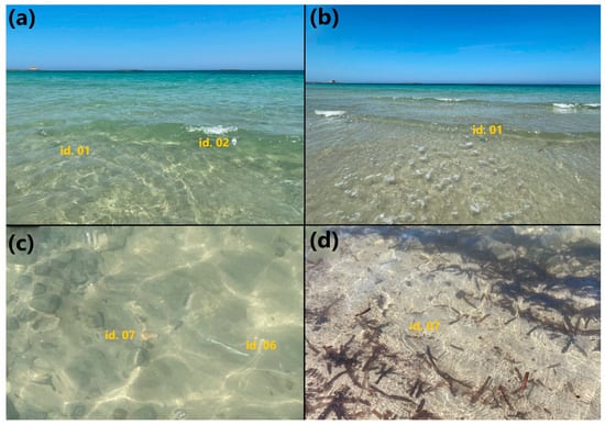This group included an empty plastic bottle, a partially water-filled plastic bottle, and an empty glass bottle (Table 3 and Figure A1). Similar results were obtained at all the surveyed points, outlining a general common trend, with differences observed at places due to the relevance of wave-breaking processes (point no. 1) or swash–backwash processes (point 0, Figure 2).