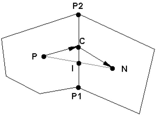 Schematic illustrating a polygon P, one of its neighboring polygon N and other point locations (Source: [45]).