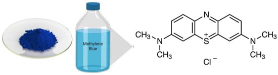 - Khan, I.; Saeed, K.; Zekker, I.; Zhang, B.; Hendi, A.H.; Ahmad, A.; Ahmad, S.; Zada, N.; Ahmad, H.; Shah, L.A.; et al. Review on Methylene Blue: Its Properties, Uses, Toxicity and Photodegradation. Water 2022, 14, 242. [Google Scholar] [CrossRef]