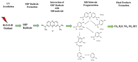 Ali MA, Maafa IM, Qudsieh IY. Photodegradation of Methylene Blue Using a UV/H2O2 Irradiation System. Water. 2024; 16(3):453. https://doi.org/10.3390/w16030453
