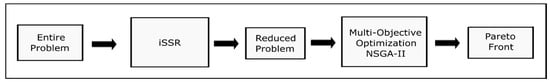 The fundamental concept is to systematically narrow the search space by reducing the number of decision variables and the level of detail while maintaining the high quality of the results. The reduced problem after the iSSR process is solved with multiobjective optimization, and Pareto fronts are obtained.