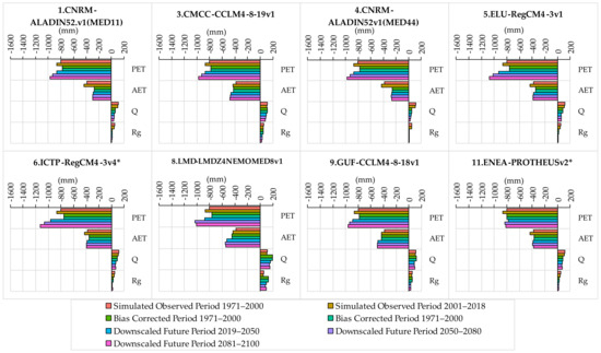 25]. The variability of the simulated variables among climatic models is smaller than the variability among climatic scenarios [