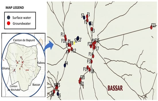 - Zoulgami, S.; Gnazou, M.; Kodom, T.; Djaneye-Boundjou, G.; Bawa, L. Physico-chemical study of groundwater in the Northeast of Kara region (Togo). Int. J. Biol. Chem. Sci. 2015, 9, 1711. [Google Scholar] [CrossRef]