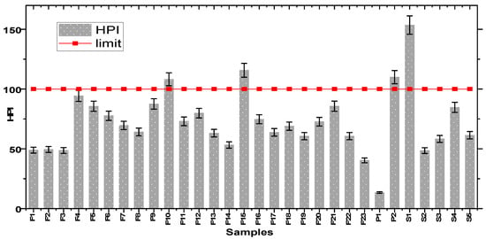 Heavy metal pollution index (HPI) for samples.