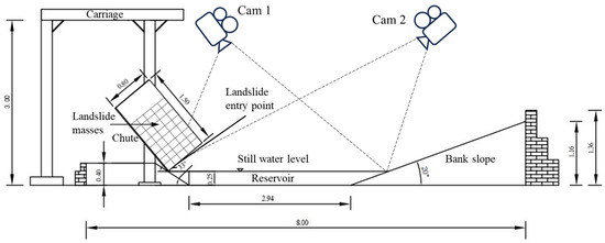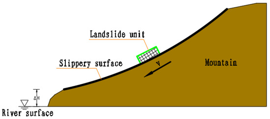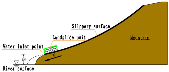 Landslides are common geological hazards that occur when sections of rock and soil on a mountain slope undergo shear displacement along a certain weak structural plane (zone) under the action of gravity and move toward lower parts of a slope as a whole, and it often occurs during or after rainfall events (Nazrien et al. [1]; Margielewski and Urban [2]; He et al. [3]). Landslides occurring in areas with rivers, reservoirs, lakes, or coasts can generate waves of energy during their rapid entry into the water, causing severe disasters (Rudy and Barry [4]; Mohammed and Fritz [5]; Tan et al. [6]; Trinaistich et al. [7]; Chen et al. [8]). Rivers and channel-type reservoirs are semi-enclosed water bodies; therefore, unlike landslides in open ocean environments, the waves generated by landslides entering the water can spread to the opposite bank in a relatively short period of time, overturning ships docked along the coast and damaging water conservancy and water transport facilities. Moreover, due to the large volume of landslides relative to water depth, landslides will quickly deposit after entering the water, causing dramatic changes in local topography in the near field in an instant, blocking river channels and even forming landslide dams (Yu et al. [9] and Cao et al. [10]). In practice, the movement of landslide masses is very complex. During the movement process, factors such as the shape of the sliding surface, the mass of the sliding mass, mechanical parameters, and boundary conditions are constantly in a state of change. These changing factors will have a great impact on the process of landslide movement, the shape of the accumulation body, and the generated swells (Heller et al. [11]; Miller et al. [12]).