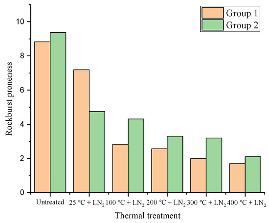 - In this study, a comparative analysis was conducted on rock specimens subjected to liquid nitrogen treatment and untreated specimens using uniaxial compression experiments to investigate their mechanical properties. The results revealed distinct differences in the stress–strain behavior between the treated and untreated samples during the compaction stage. Specifically, the stress–strain curve of the treated samples exhibited a faster growth rate and higher hardness compared to the untreated samples. Furthermore, the compressive strength of the specimens exhibited a greater variation with temperature, with a more pronounced change as the temperature increased. Additionally, the elastic modulus of the samples generally exhibited a decreasing trend with temperature, and the rate of change intensified with temperature differences. Moreover, the failure characteristics of the rock specimens subjected to liquid nitrogen treatment shifted from brittle failure to ductile failure. This indicates that the mechanical properties of the rock samples underwent adaptive changes as a result of the liquid nitrogen treatment, potentially attributed to significant alterations in the sample’s structure and porosity. Additionally, significant changes in the deformation characteristics of the rock samples during the compression process were observed after the liquid nitrogen treatment. The treatment increased the porosity within the rock, leading to the development of microcracks and fractures, and enhanced the susceptibility to rock burst induction, thereby increasing the likelihood of rock burst occurrence.