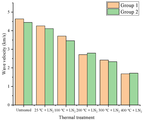All rock samples in the experiment were subjected to three wave velocity tests, and the average wave velocity at two temperatures was calculated based on the results obtained, as shown in Figure 9.