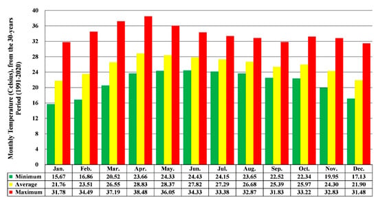 Monthly temperature data from the 30-year period (1991–2020) in Chiang Mai Province.