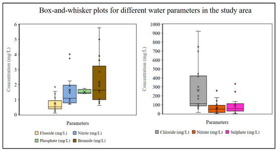Box–and–whisker plot showing descriptive statistics of water parameters.