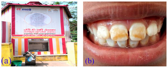 (a) NTR Sujala (drinking water plant), Neerukonda. (b) Dental fluorosis observed in the study area.