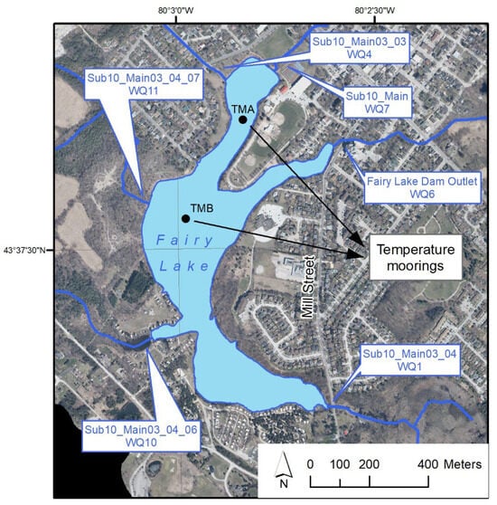 - Town of Halton Hills. Fairy Lake Water Quality Study, Prepared by: AECOM, Project Number: 107983 Date: December 2009. Available online: https://www.haltonhills.ca/en/explore-and-play/resources/Documents/FairLakeWaterQualityStudy.pdf (accessed on 10 January 2024).