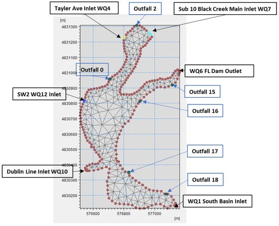 The model boundaries (as shown in Figure 3) are Sub-10 Black Creek Main Inlet WQ7, Tayler Ave Inlet WQ4, SW 2 WQ12 inlet, Dublin Line WQ10 Inlet, South Basin WQ1Inlet, and FL Dam WQ6 outlet.