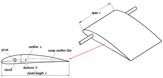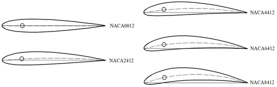 Upon careful observation, it becomes apparent that the cross-section of the fishtail exhibits a distinct curve, resembling the shape of an actual fish’s tail. In close proximity to the pivot axis, the fish tail’s skeletal structure is occupied by muscles, which gradually diminish in size and eventually vanish near the tail’s extremity. This bears a resemblance to the cross-sectional configuration of an airplane wing. Thus, in order to examine the influence of foil curvature on the hydrodynamic efficiency of the flapping hydrofoil bio-inspired pump, we have selected the NACA series standard airfoils as the subjects of our study. Figure 3 displays the foil profile and primary characteristics of the flapping hydrofoil bio-inspired pump. The figure illustrates the foil’s characteristics, where c, b, and e denote the chord length, maximum thickness, and maximum camber, respectively. The parameters derived by dividing each of these numbers by the foil chord length c are known as the non-dimensional values of these parameters, which are utilized to depict the geometric shape of the foil. For instance, the highest thickness value = b/c, and the highest camber value = e/c. Furthermore, the measurement of the flapping foil’s width is represented as s. Figure 4 depicts the geometric configurations of foils with varying curvatures that were examined in this research. When studying the curvature of a foil, the thickness of the foil remains consistent at 12% of the length of the chord. The foil’s greatest curvature is located at a distance of 40% of the chord length from the leading edge. The relative maximum camber ranges from 0% to 8%. Table 1 displays the fundamental characteristics of foils with varying cambers.