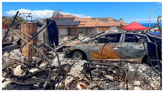 - Rush, C.; Dupuy, B.; Sinco, J. Death Toll from Maui Wildfire Reaches 89, Making It the Deadliest in the US in More than 100 Years. Associated Press. 12 August 2023. Available online: https://apnews.com/article/maui-hawaii-fires-lahaina-destruction-evacuation-38ec0d6a5c610035a0a72b804fcdffe0 (accessed on 1 September 2023).