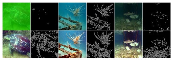 We conduct a quantitative evaluation as well as a qualitative comparison between our method and other 11 different methods on several datasets. These 11 methods include 3 traditional methods (IBLA [], UDCP [], and ULAP []), 7 deep learning-based methods (UWCNN [], Water-Net [], UGAN [], FUnIE-GAN [], Ucolor [], USUIR [], and Peng et al. []), and 1 contrastive learning-based method (CWR []). This comparison helps to evaluate the effectiveness of the proposed method in addressing various challenges associated with underwater image restoration. We first present the experimental dataset and evaluation metrics and supplement the implementation details of the experiment, then present the quantitative results, visual comparisons, and results analysis. Finally, we conduct an ablation study and an edge detection application test.