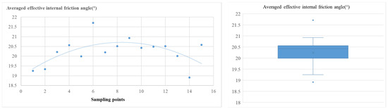 Spatial distribution pattern of averaged internal friction angle of fine-grained sediments (left) and its box–whisker plot (right).
