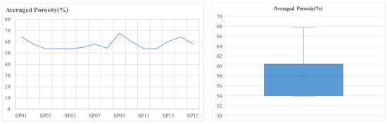 Spatial distribution pattern of averaged porosity of fine-grained sediments (left) and its box–whisker plot (right).