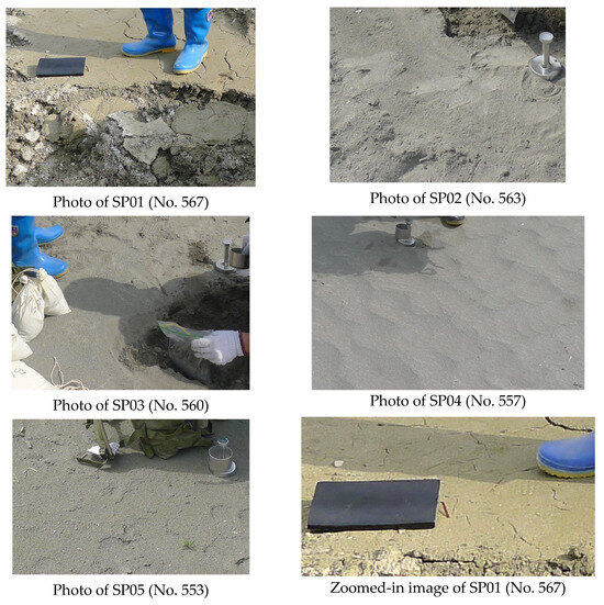As shown in Table 1, the Gaofen-2 (GF-2) remote sensing image covering the study area is first acquired with the highest spatial resolution of 0.8 m. Using this, the locations of fine-grained sediments in the debris flow gully are extracted (SP01–SP15 sampling points in Figure 1). Then, the DEM data are acquired to analyze elevation of the study area. Finally, after the debris flow disaster on 20 August 2019, 200 soil samples were obtained from 15 sampling points using a ring cutter between 19 and 25 March 2021 and the number of samples at each sampling points is shown in Table 2. Each sample has a volume of 600 mL and a weight of about 1 kg. With a diameter of 7 cm and a depth of 5.2 cm, the volume of the ring knife is 200 mL. Using this, the sampling procedure for a soil sample is as follows: ① clean the ring knife using a soft cloth; ② put it into the sediment vertically. When it is full of soil, pull it out and cut off the over-flowing soil with a knife. Thus, a soil sample with a volume of 200 mL is collected; ③ put the soil sample into a plastic bag and seal it immediately. After collecting three soil samples in the same plastic bag according to the above steps, seal the plastic bag and consider it as a sample with a volume of 600 mL and put it into a cotton bag; ④ record the sample number and its geographical location using a global positioning system (GPS) and write the sample number on the cloth sample bag with a marker [43].