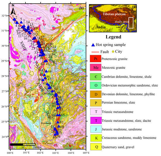 Hot springs are the surface manifestation of deep hydrothermal fluids, which frequently present in regions of active volcanism and intense tectonic activity [1,2]. In the past decade, geothermal energy has been increasingly emphasized because of its advantages like renewable and large reserves, and it is widely exploited for power generation, tourism, physiotherapy, heating, etc. [3,4,5].