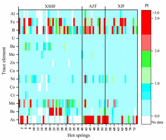 Heat map of the PI of trace elements in the hot-spring waters in the XSHF-XJF.