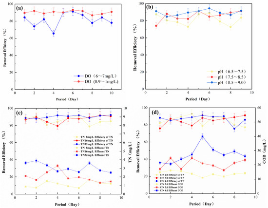 3.1. Investigation of Nitrogen Removal Performance for Simulated Wastewater