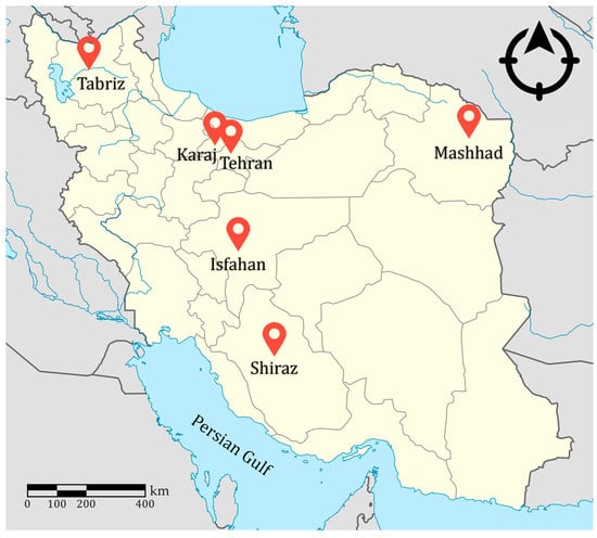 Geographical locations of the metropolises in Iran.