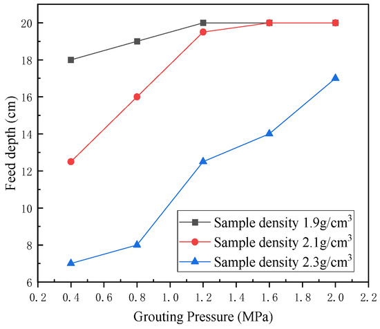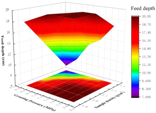 Relationship between grouting pressure, sample density, and grouting depth.