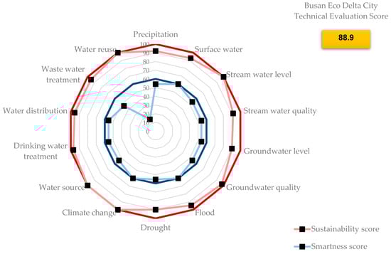 Smart water city individual evaluation scores for Busan Eco Delta City (Busan Metropolitan City) under the urban water cycle category.