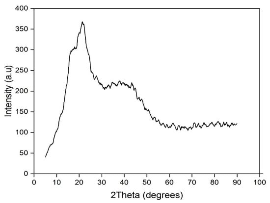 For the physical and chemical characterization of the bioadsorbent (orange peels in powder size), several techniques were used. The Fourier-transfer infrared (FTIR) spectrum was used to examine the nature of the chemical bonds with a JASCO FT/IR -4600 type device (JASCO, Tokyo, Japan). A thermogravimetric analysis (TGA) was performed to study the thermal stability with the TGAQ50 module from the Thermal Analyzes device. The crystalline structure of the orange peels was evaluated by X-ray diffractometer using Cu with wavelength K-Alpha (1.54) at 40 mA and 40 kV with a scan analysis. The Scanning electron microscopic (SEM) analysis of the bioadsorbent was recorded with a scanning electron microscope Quanta 650 (FEI Company, Hillsboro, OR, USA). The Brunauer–Emmett–Teller (BET) method was employed to measure the surface area of the orange peel powder. Moreover, the identification of the points of zero net charge, iodine number, and contact-free pH was determined.