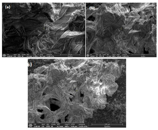 Figure 2 reports the graphical calculation of pHpzc; at pH = 2.63, the surface charge is zero. For pH values higher than pHpzc, the biosorbent surface charge is negative [58,59].