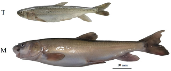 Manas River population (Figure 4 (M)): a creamy white abdomen from the waist upward to the back, and the color gradually deepens to grayish white; the grayish white of the back fades darker; the lateral line is light brown, and the dorsal spine is dark gray, accompanied by fine black spots.