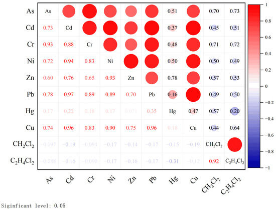Correlation analysis has a basic distinguishing effect on exploring the sources of different PTEs, and can simply identify the correlation between different PTEs. In general, correlation analysis can be used to analyze whether different PTEs have a significant positive correlation, so as to determine whether different PTEs may come from similar sources or the same source [43].