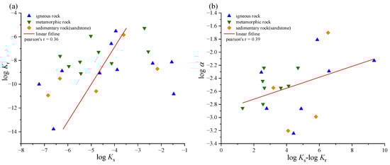 Relationship of parameters in the exponential model, (a) the Log Ks–Log Kr relationship, (b) the (Log Ks–Log Kr)–α relationship.