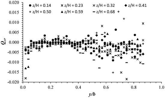 Distribution of the Qcr values in the cross-plane (y-z) at the unvegetated area at x = 0.